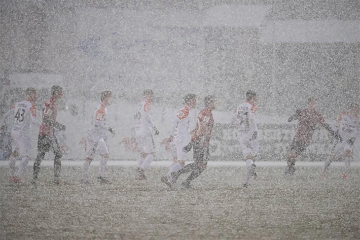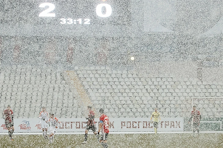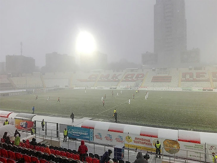 Сегодня не повезло молодежкам «Амкара» и «Урала», которые сыграли в метель при -6 градусах. Зеленый газон футболисты видели только на первых минутах, а вскоре со снегом слились и гости, вышедшие на матч в белой форме. Хоязева адаптировались лучше и победили – 5:1.