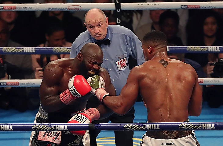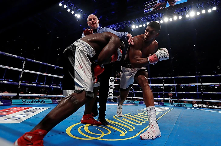 ...пока в десятом рефери не вмешался и не остановил бой, посчитав преимущество Джошуа абсолютно подавляющим. Очень спорное решение.