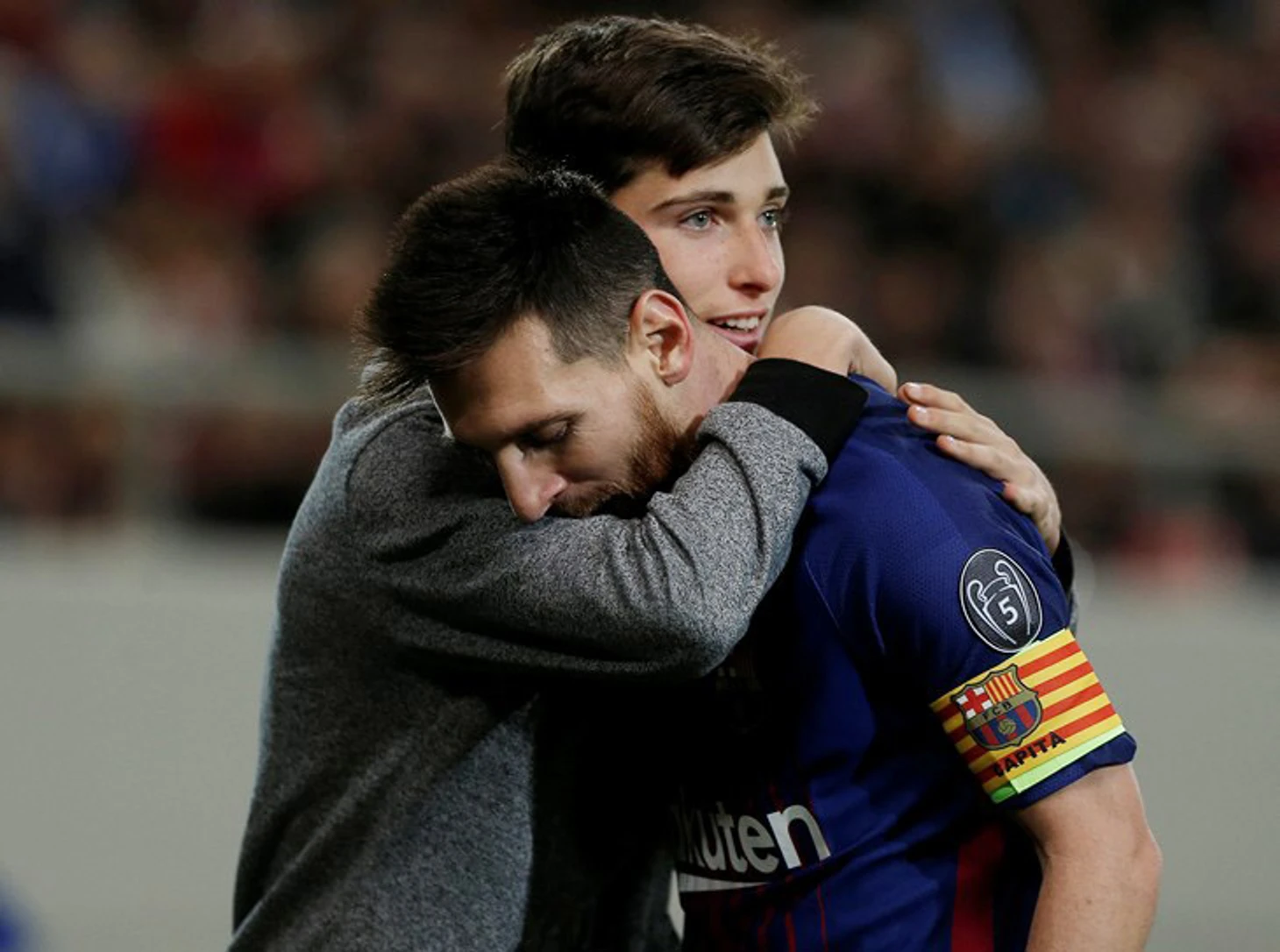Уже на первой минуте болельщик подбежал к Лионелю, который готовился выполнить угловой, обнял его и поцеловал.