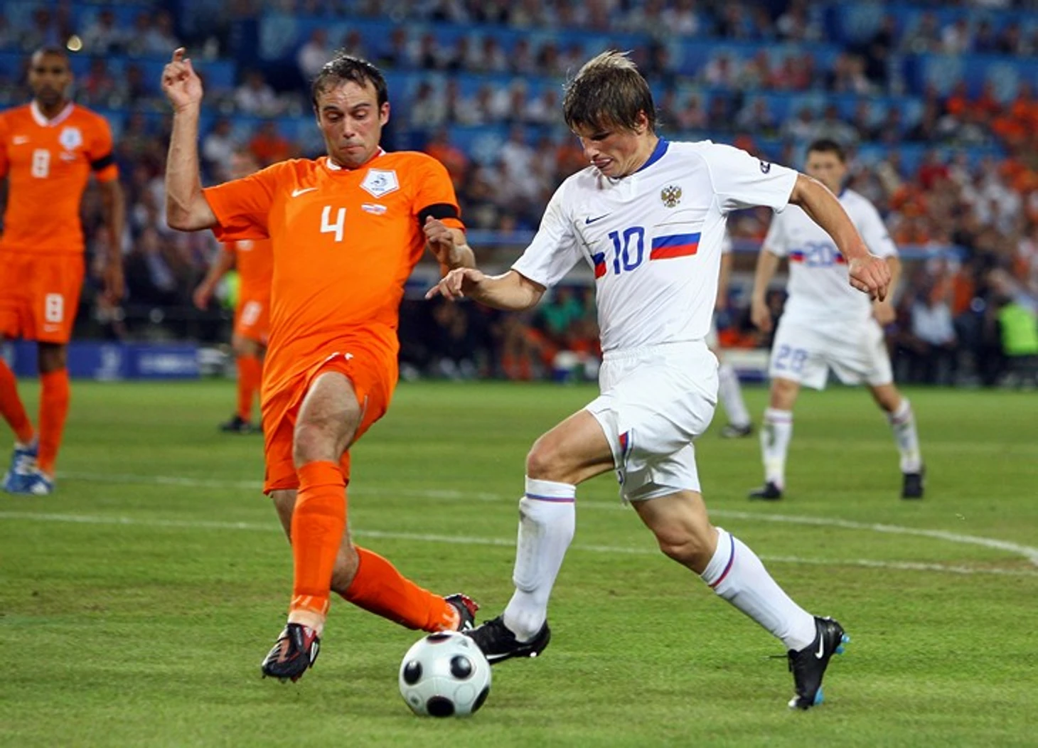 Евро-2008. Форма, в которой сборная России провела лучший турнир в своей истории. Синего почти не осталось, а по бокам от номера появились российские флаги. При этом сборная при Гусе Хиддинке в основном играла в красных футболках и белых шортах.