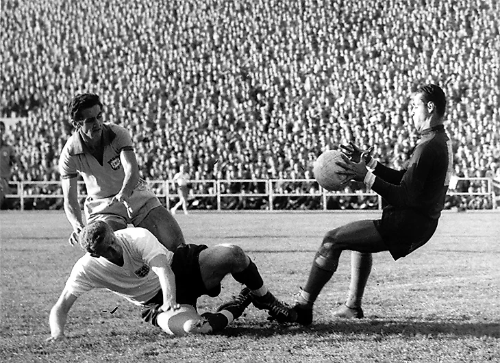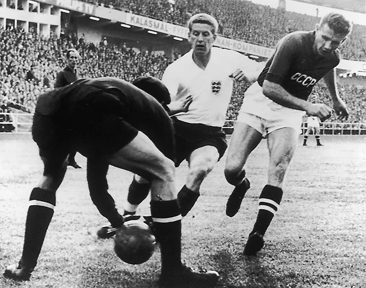 ЧМ-1958 был первым для сборной СССР – предыдущие турниры команда пропускала. В дебютном матче советская сборная со Львом Яшиным (но без Эдуарда Стрельцова) едва не обыграла Англию, которая потеряла 4 игроков в мюнхенской катастрофе – 2:2.