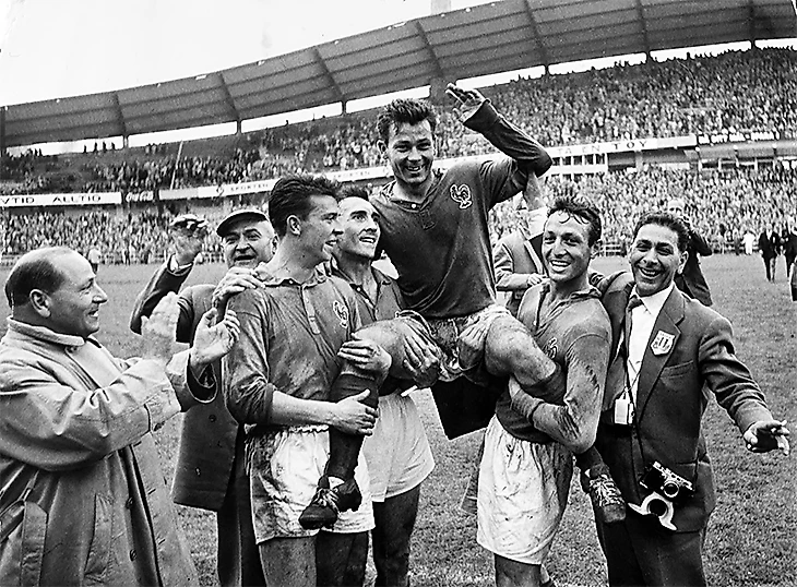 Еще одна легенда тех времен: француз Жюст Фонтен. Его рекорд в 13 голов в финальной части ЧМ до сих пор не побит.