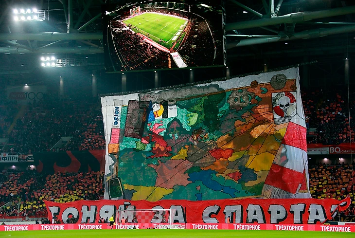 На первом баннере нарисовали карту выездов по Европе – в середине недели москвичи получили разгром 0:7 в матче Лиги чемпионов с «Ливерпулем», заняли третье место в группе и весной выступят в Лиге Европы.
