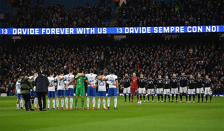 Перед игрой была минута молчания. Надпись «Давиде всегда с нами» появилась на экранах стадиона «Этихад».