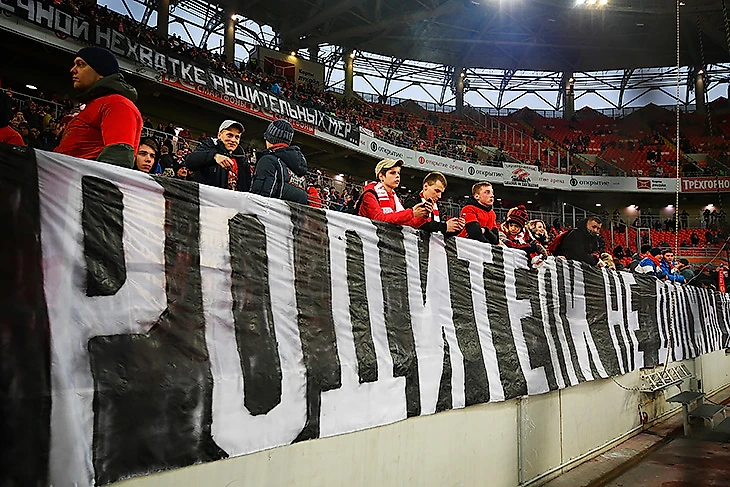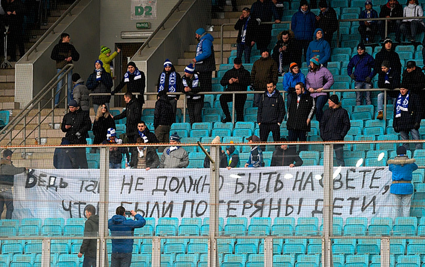 Траурные баннеры болельщиков «Динамо» на матче с «Арсеналом».