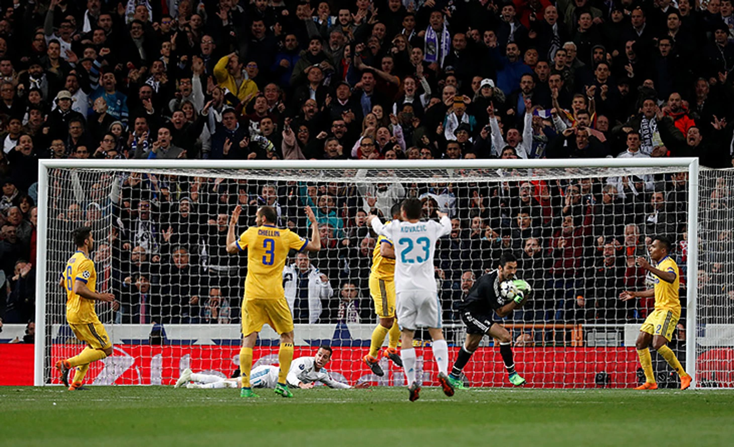 В добавленное время при счете 0:3, когда «Ювентус» почти переключился на овертайм, «Реал» верхом загрузил в штрафную. Криштиану Роналду скинул мяч назад на набегавшего Васкеса – испанец готовился расстреливать, но его сзади смял Мехди Бенатия.