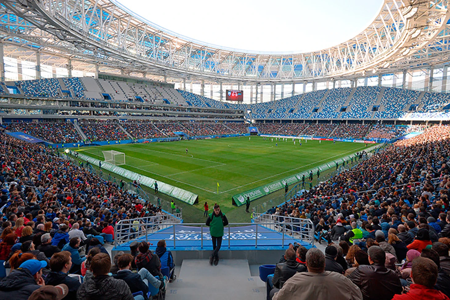 Стадион «Нижний Новгород» построен специально к ЧМ-2018 и вмещает почти 45 тысяч зрителей. Сегодня он принял первый в истории официальный матч – нижегородский «Олимпиец» (бывшая «Волга») играл с «Зенитом»-2 в рамках ФНЛ.
