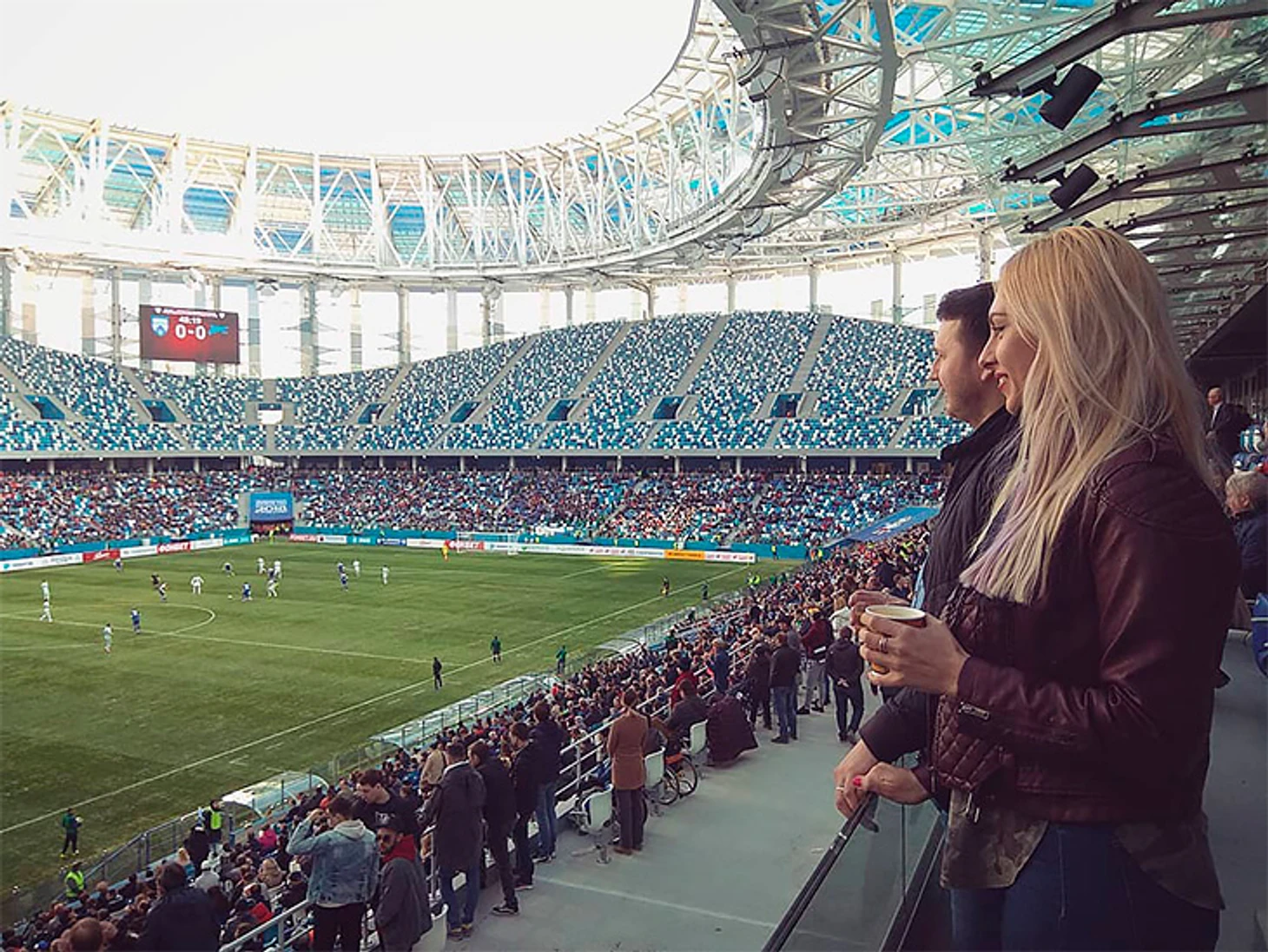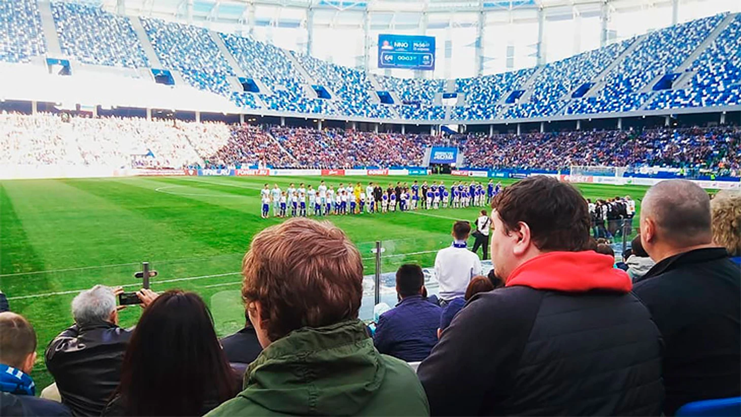 Как видите, некоторые ярусы недоступны для зрителей. Это был тестовый матч, на него продавали 15 тысяч билетов, все раскупили. «Олимпиец» в итоге проиграл 0:1.