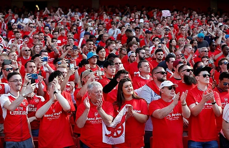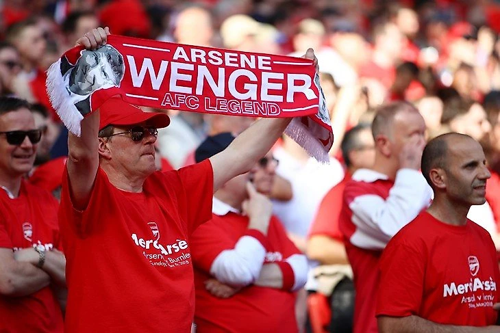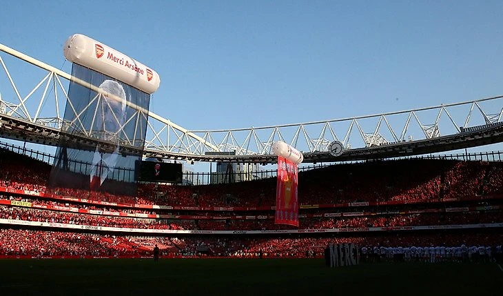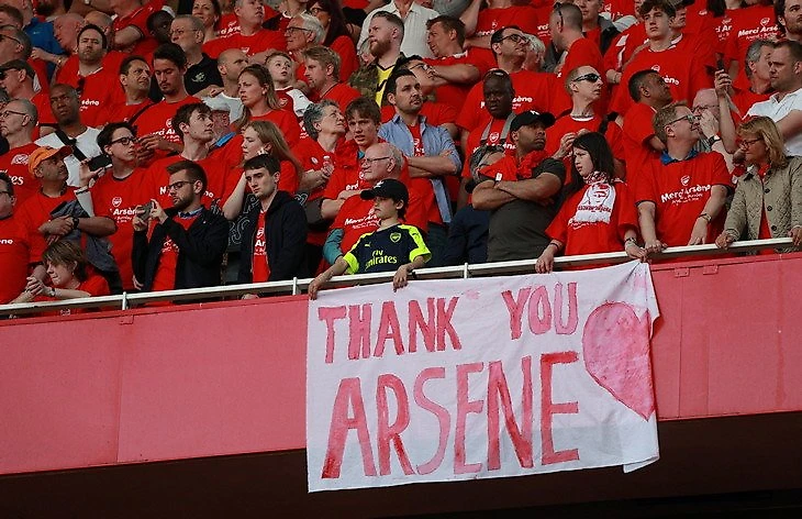 Весь «Эмирейтс» приветствовал Венгера в одинаковых красных футболках.