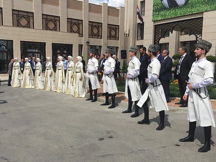 У отеля египтян встретил ансамбль танца «Вайнах».