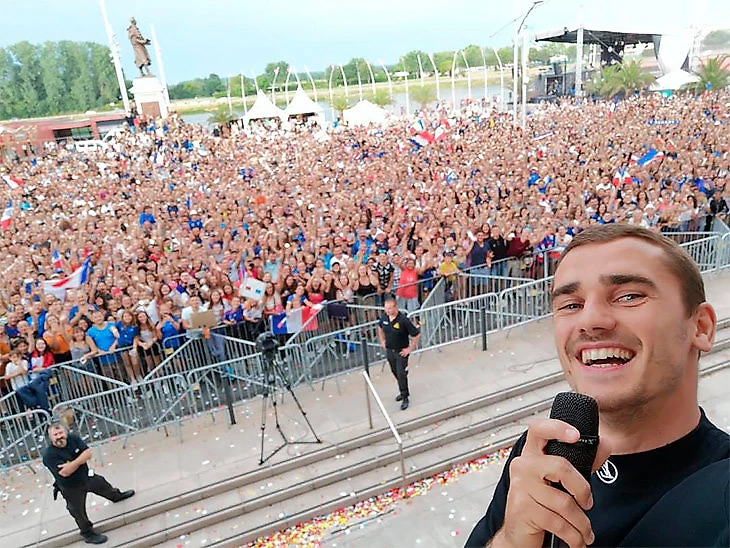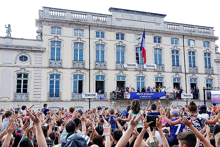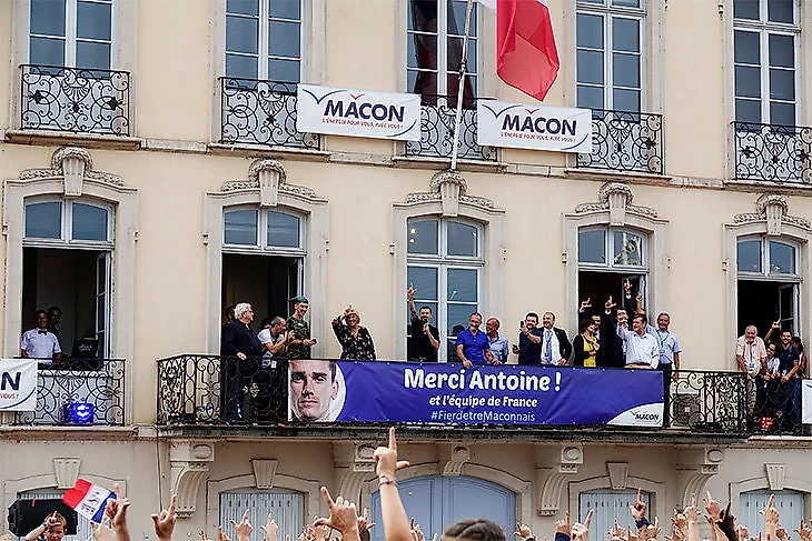 Чемпион мира Антуан Гризманн приехал в родной Макон (регион Бургундия) – 30-тысячный город шикарно встретил лидера сборной Франции.