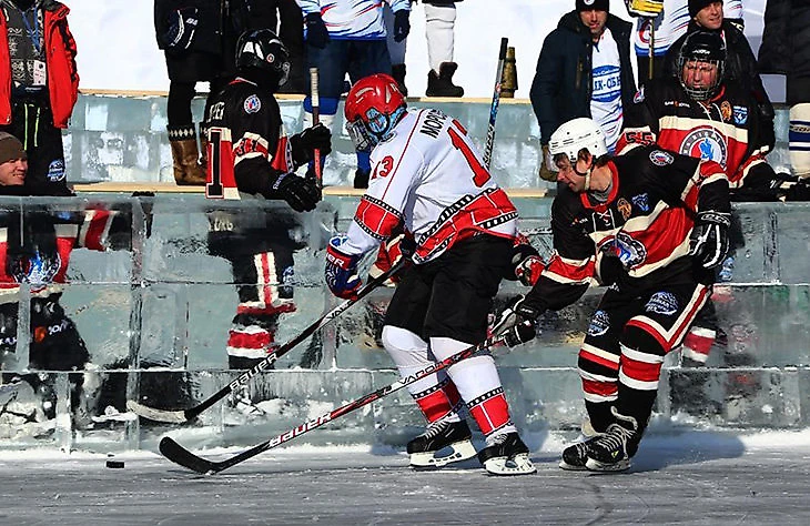 Легенды хоккея сыграли на льду самого глубокого озера в мире. Матч состоялся в рамках Ночной хоккейной лиги, и был закрыт для зрителей. Организаторы опасались, что лед не осилит болельщиков из ближайшего поселка Листвянка – в итоге игру провели в бухте Серебряная, где лед позволял установить коробку и шатры для команд. Площадка имела свои особенности: борты были созданы изо льда.