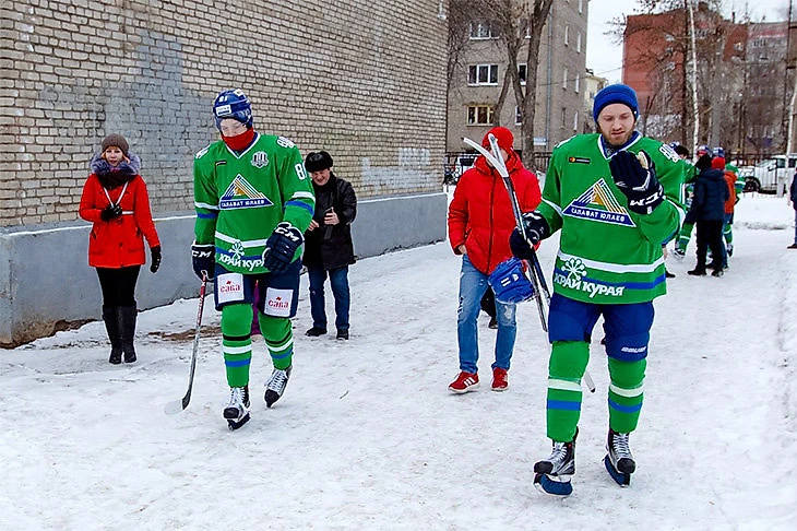 «Салават Юлаев» сыграл в хоккей с дворовыми командами на самой обычной уличной коробке. Матч прошел на площадке рядом с уфимским лицеем. «Салават» сыграл с тремя командами болельщиков – против каждой из них пятерка мастеров провела по периоду.
