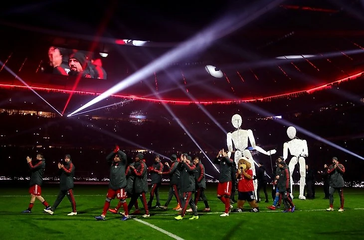 В такие дни «Бавария» всегда делает для болельщиков что-нибудь особенное (как правило, при помощи светодиодной системы от Phillips). Например, в прошлом году она игралась с 3D-маппингом: прямо на футбольном поле мелькали разные изображения.
