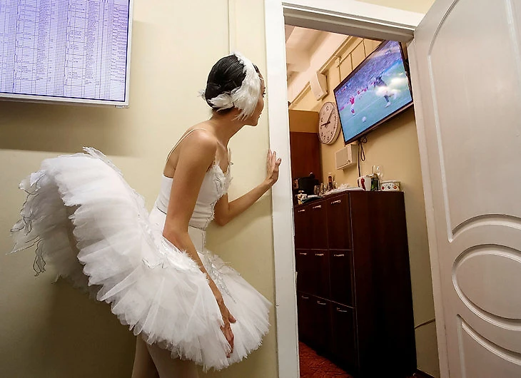 7 июля, Санкт-Петербург. Балерина, подсматривающая за футболом, – символ того, что случилось с Россией прошлым летом.