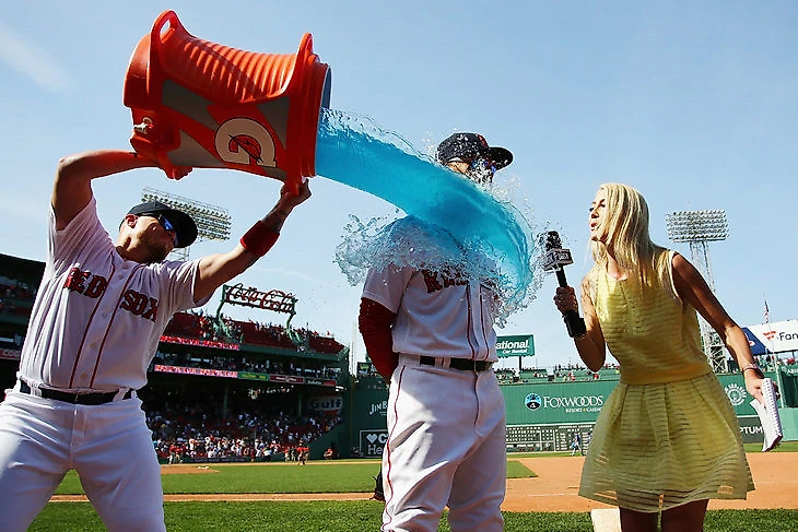 2 мая, Бостон, после бейсбола. Местные Red Sox обыграли Канзас, героя матча Муки Беттса обливает водой его партнер по команде. Будут и другие жертвы.