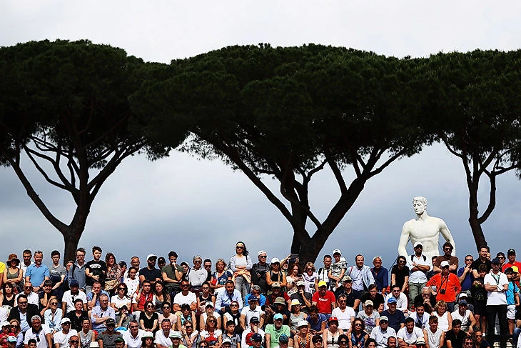 17 мая, Рим. Псевдоантичные скульптуры эпохи Муссолини вместе со зрителями смотрят теннис на «Форо Италико».