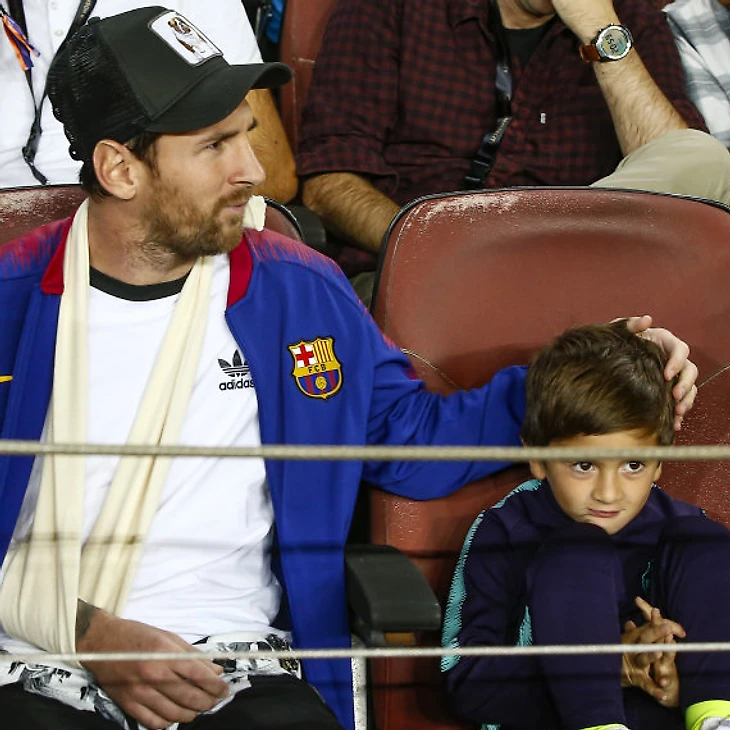 Помните у Лео был перелом руки? Переживать травму рядом с сыном легче. На фото – октябрь 2018-го, домашний матч с «Интером» в Лиге чемпионов.