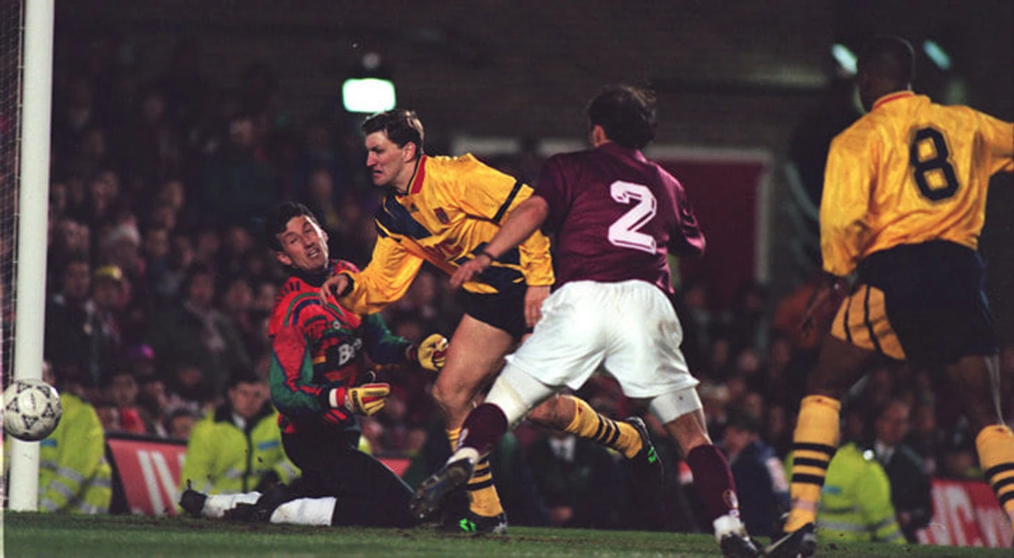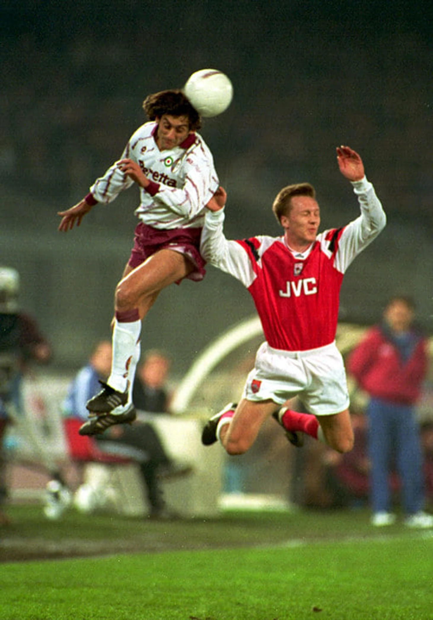 Главным талантом в атаке «Арсенала» был Иан Райт – рекодное приобретение, лучший бомбардир и самая яркая звезда той команды. Именно он открыл счет в Париже (Жинола в итоге сравнял – игра закончилась 1:1).