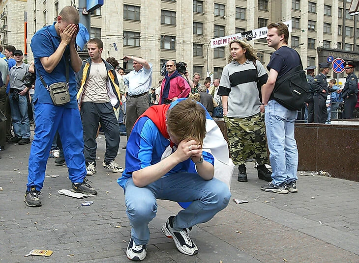 Знаменитое фото с плачущим Сычевым (ему 18) и успокаивающим его Кержаковым (ему 19).