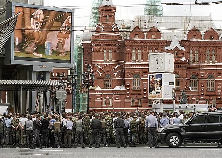 Несмотря на столкновения, случившиеся на Манежной площади после матча России и Японии, игру с Бельгией тоже показали на больших экранах.