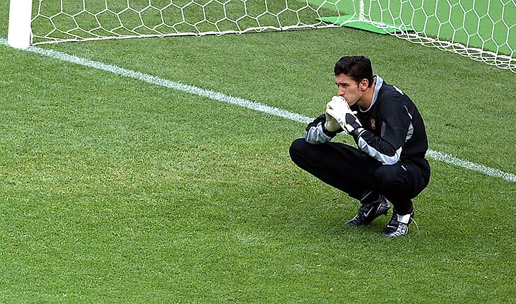 Руслан Нигматуллин расстраивается после матча. Кстати, запасным вратарем на том турнире был Станислав Черчесов.