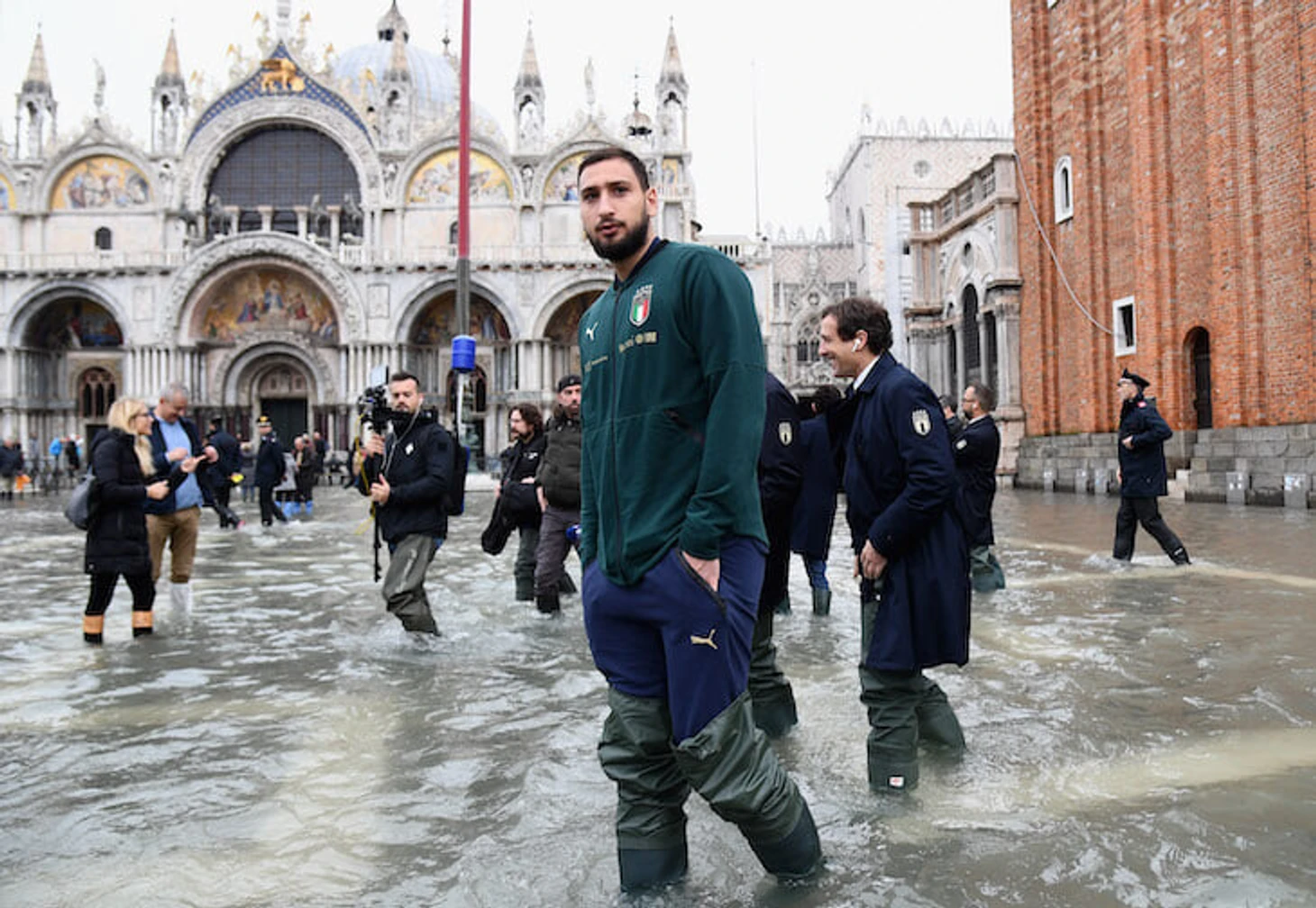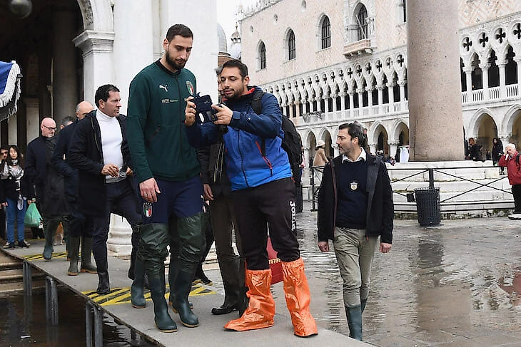 В Венеции сильнейшее наводнение за 50 лет. Туда приехала сборная Италии, а Доннарумма погулял по городу
