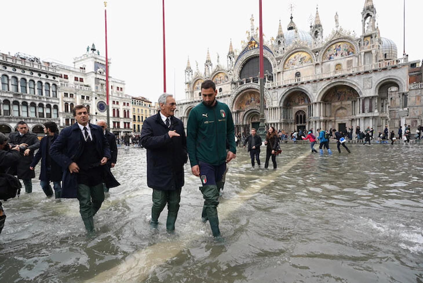 Вратарь сборной Джанлуиджи Донарумма, президент Федерации футбола Италии Габриэле Гравина и Джанлука Виалли, который сейчас занимает в сборной что-то вроде поста генерального менеджера, прогулялись по центру Венеции – в пресс-релизе FIGC отмечается, что это сделали в поддержку жителей Венеции, чтобы показать свое сочувствие и причастность к обществу.