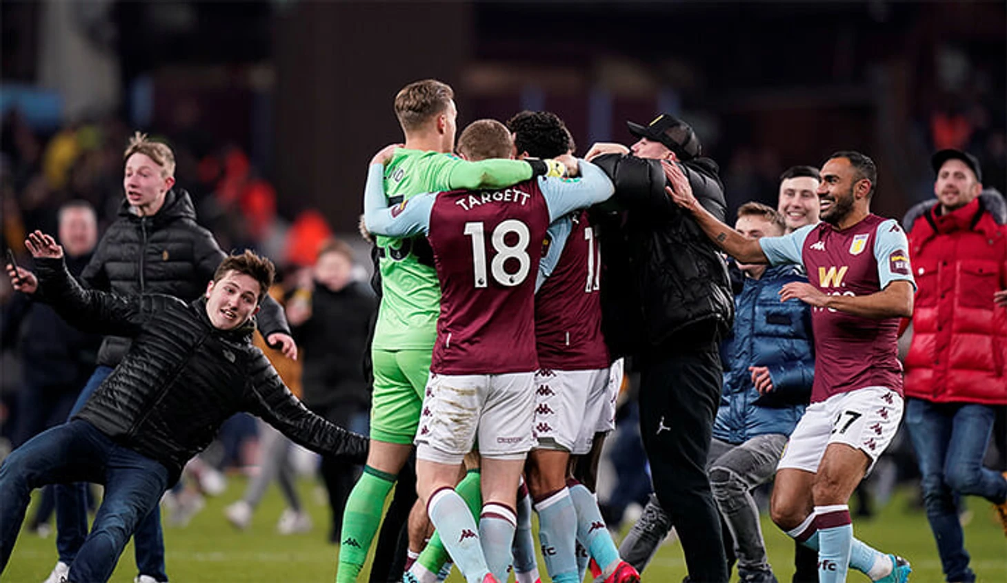 Фаны пытались добраться до каждого футболиста «Астон Виллы». Вот Трезеге, забивший решающий гол. Вот Грилиш – преданный капитан команды. Эрьян Нюланд – он сегодня отбил 3 опасных удара, а в первом полуфинале (1:1) творил настоящие чудеса.