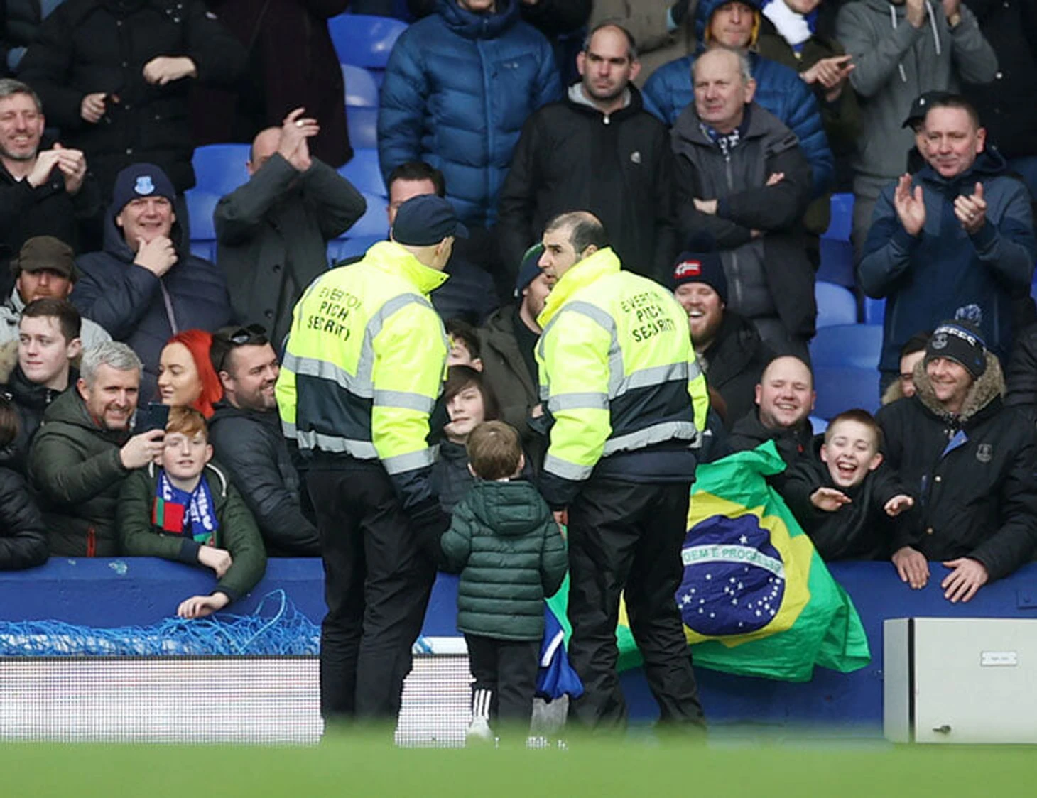 В Англии на поле выбегают даже малыши. Стюарды улыбаются, а игрок «Эвертона» дарит футболку