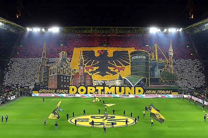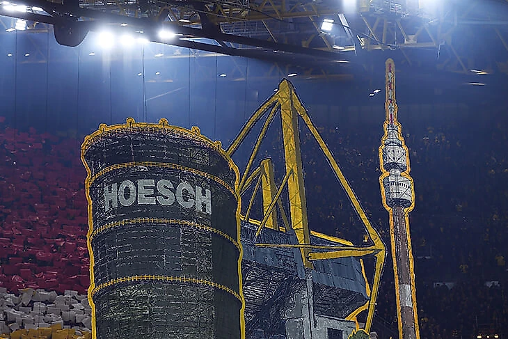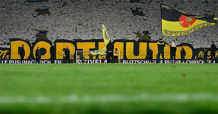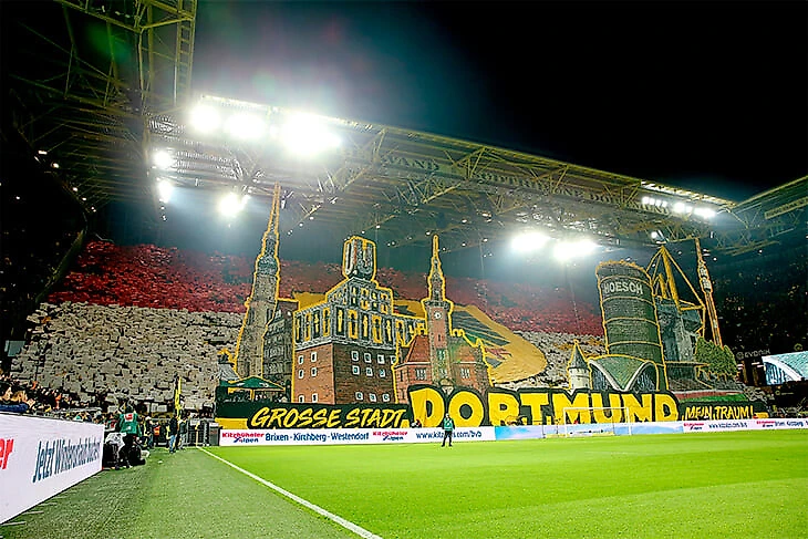 Чтобы собрать огромный перфоманс и скоординировать действия 24 тысяч (!) людей, часть активных болельщиков пришла на «Сигнал Идуна Парк» в 10 утра (матч начинался в 20:30 по местному времени). Они разложили листы разных цветов на Южной трибуне и прикрепили плакаты с инструкциями.