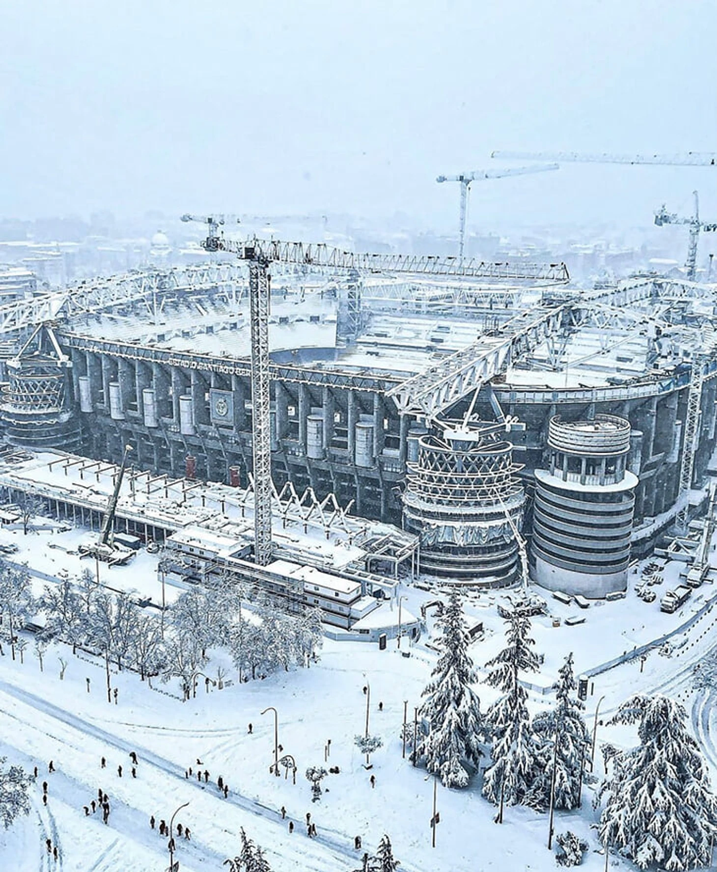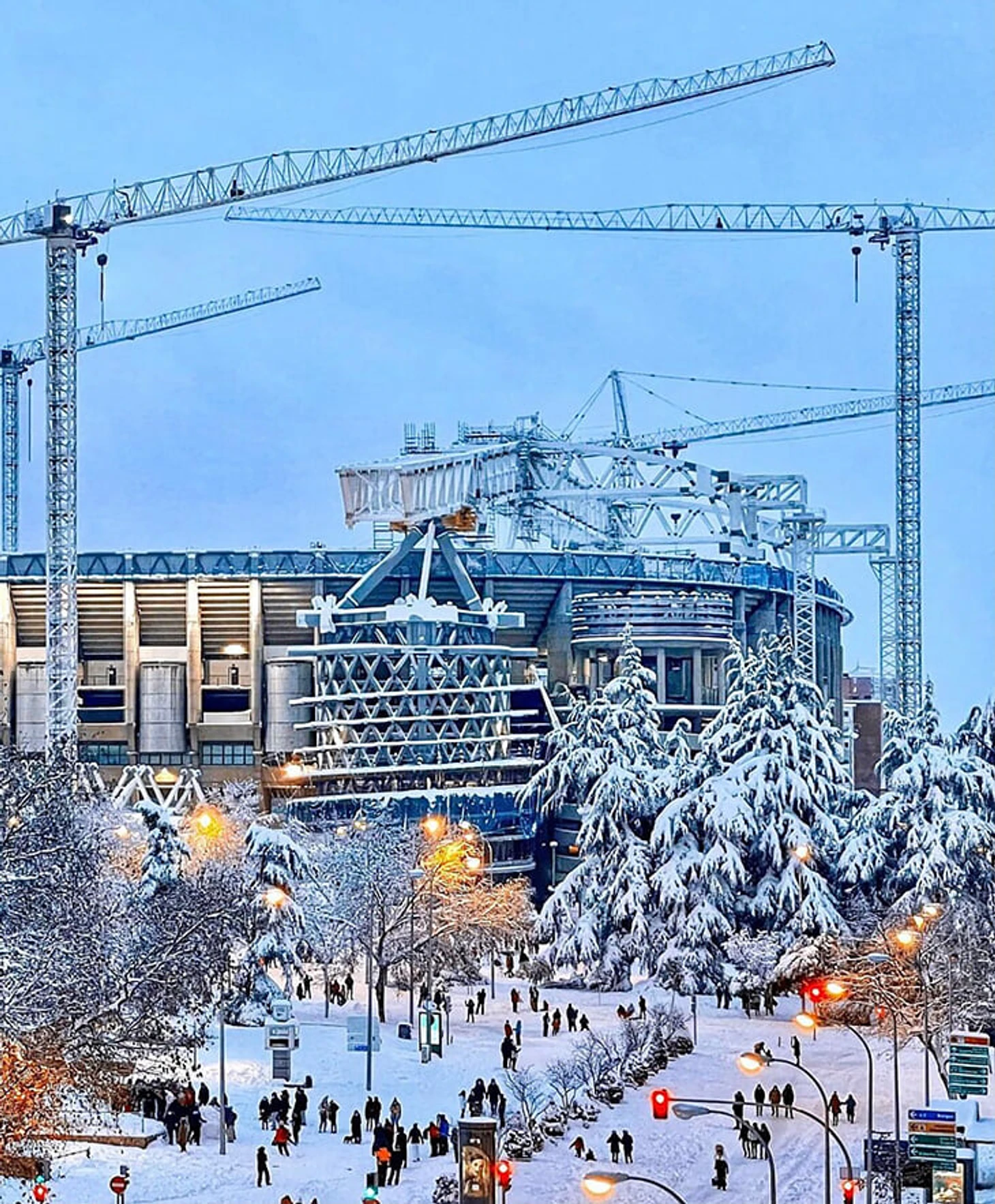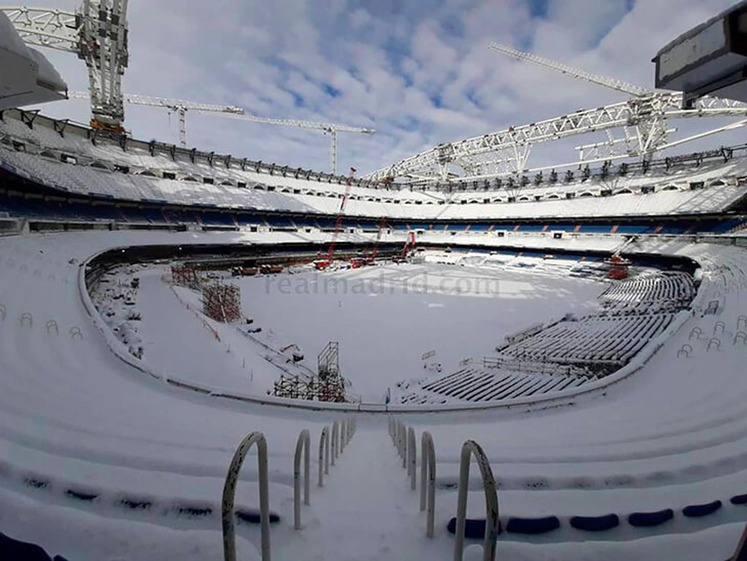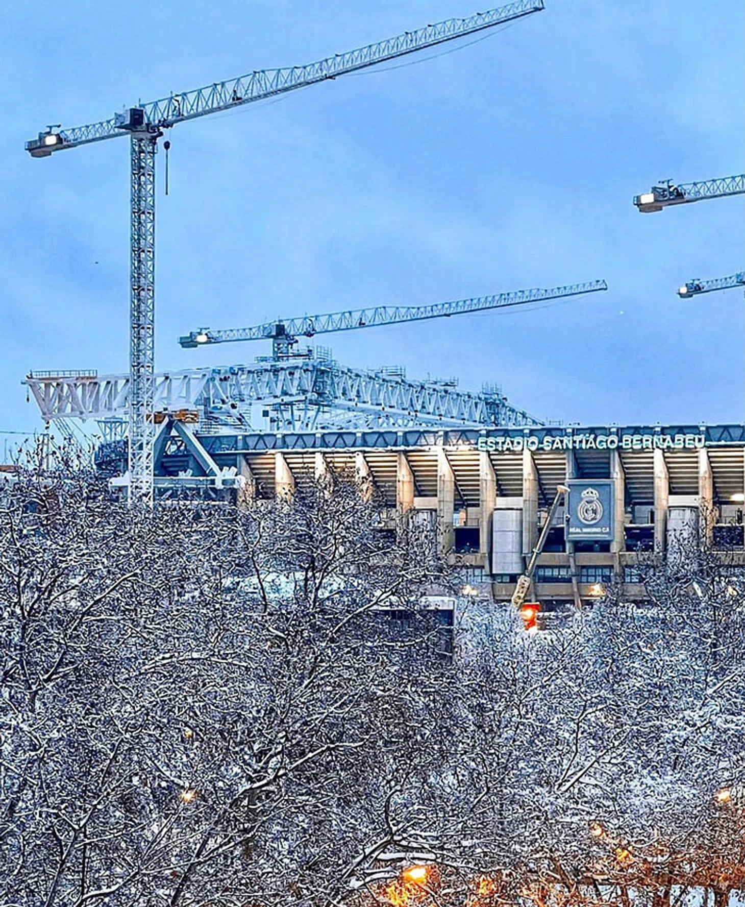 Просто посмотрите на заснеженный «Сантьяго Бернабеу» – даже подъемные краны (там все еще реконструкция, «Реал» играет на маленьком «Эстадио Альфредо Ди Стефано») не слишком портят красоту.