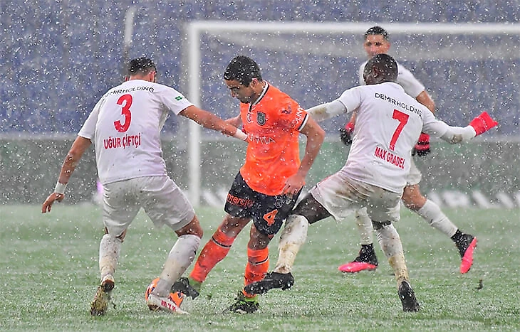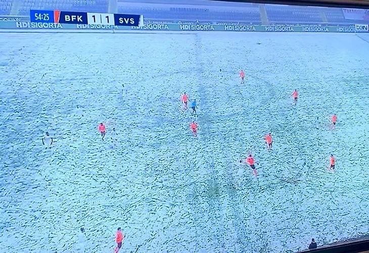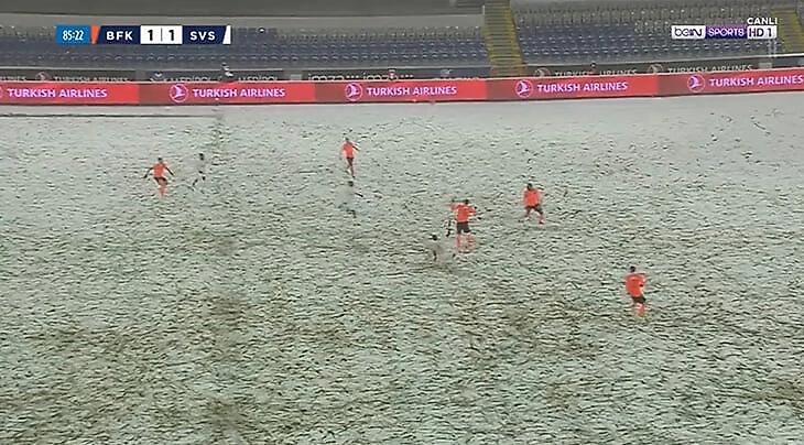 Мы бы не обратили внимания на матч «Истанбула» и «Сивасспора» (1:1), но все решила погода. Команды доигрывали просто в жутких условиях, все было в порядке до 20-й минуты, а потом повалил снег.