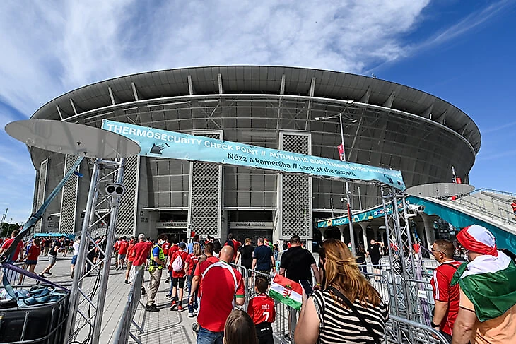 Стадион в Венгрии единственный на этом Евро, где разрешили такую посещаемость. Для сравнения: в воскресенье за матчем Англии на «Уэмбли» следили всего 18 500 зрителей.