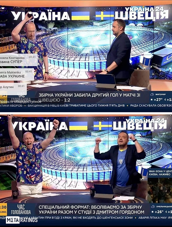В самой стране тоже празднуют. Например, телеведущий Дмитрий Гордон в честь победы сборной в прямом эфире облился водой.