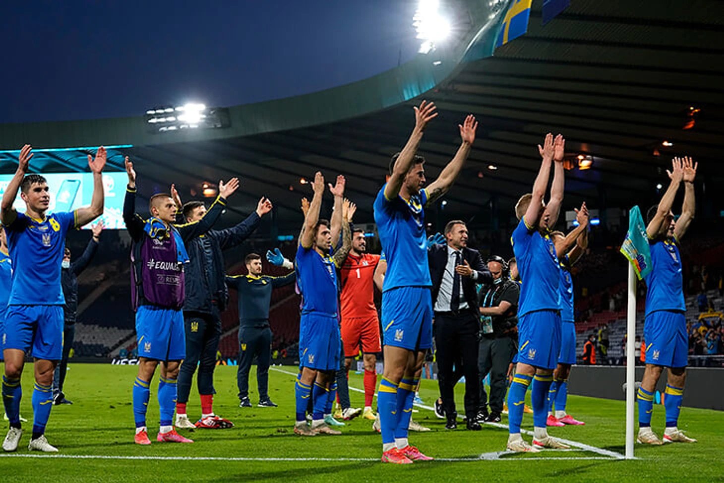 Сборная Украины в полном составе подошла к болельщикам – поблагодарить за поддержку тех, кто доехал до Глазго.