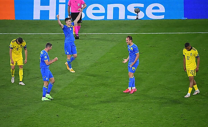 УАААА! Сборная Украины – в четвертьфинале Евро-2020! Шведов дожали на 121-й минуте – Зинченко подал, Довбик замкнул.