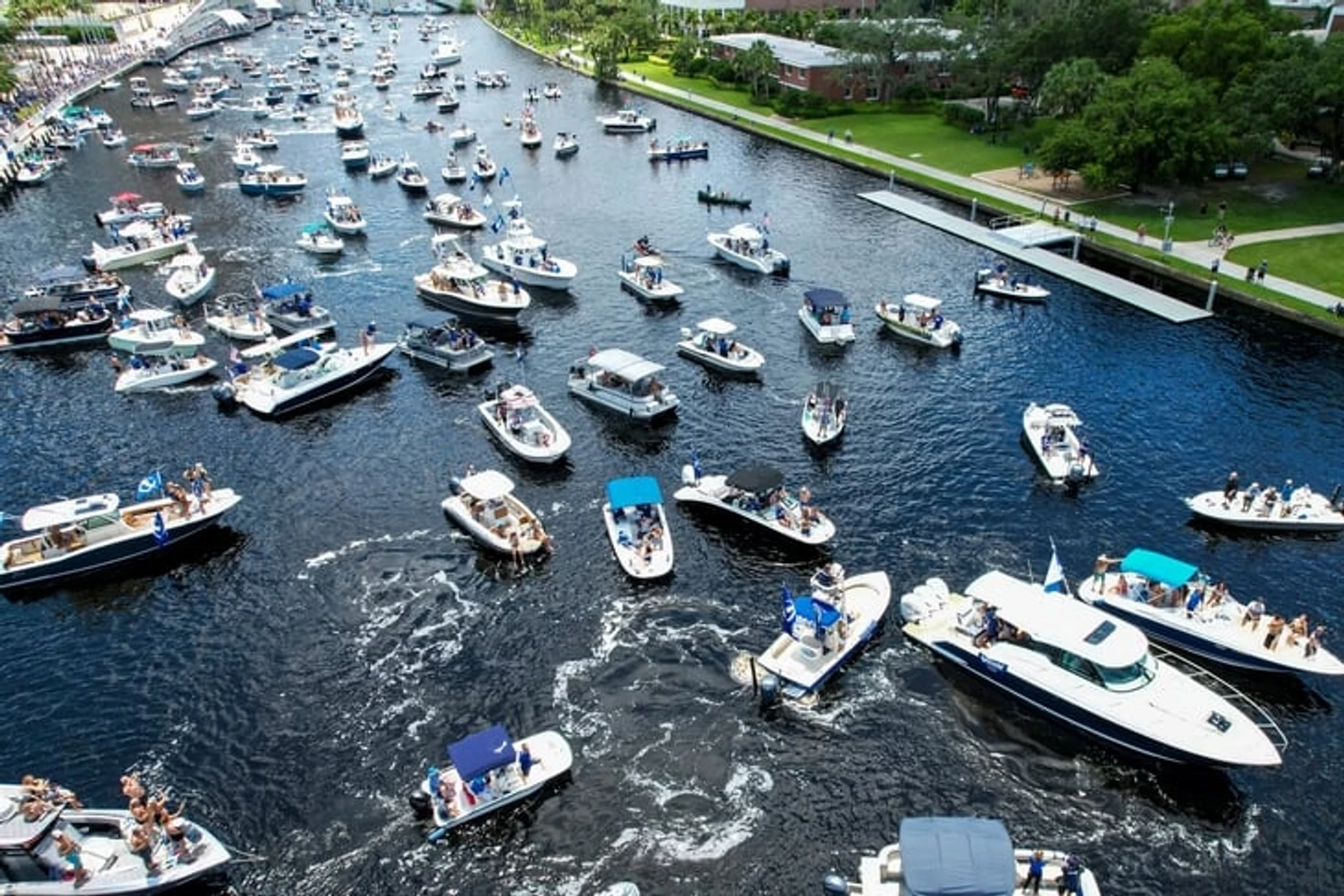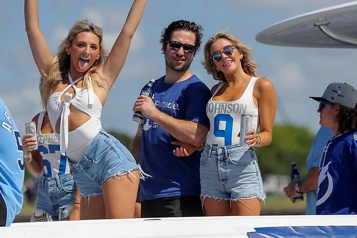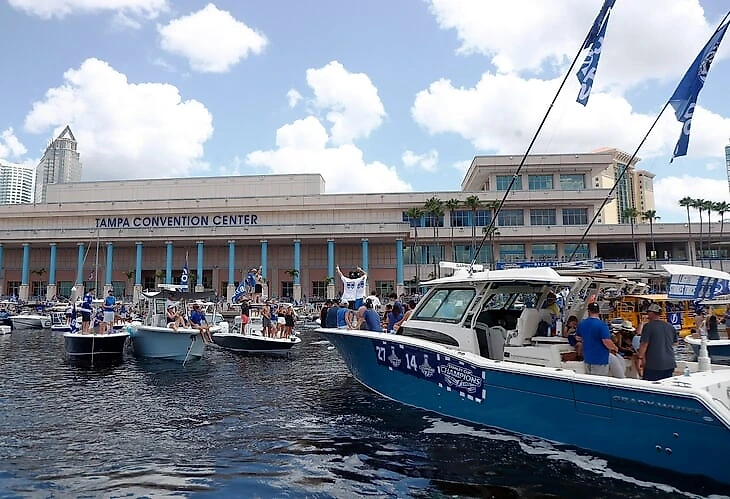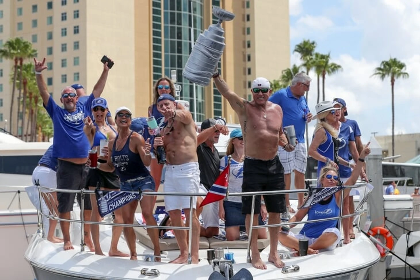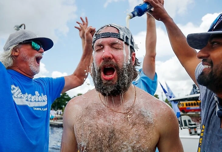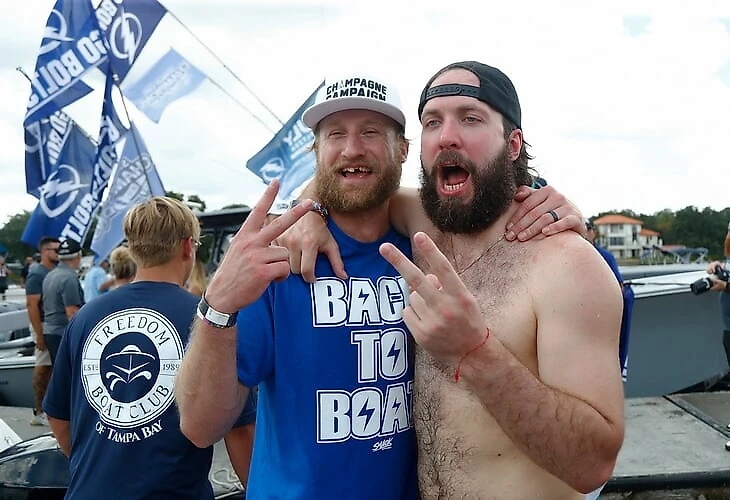 Речные чемпионские парады на реке Хилсборо начинают входить в традицию Тампы. В прошлом октябре тренд задали хоккеисты «Лайтнинг», ярко отметив победу в коронавирусном плей-офф, в феврале пример взяли «Бакканирс», выигравшие Супербоул, и спустя 10 месяцев «Молния» вернулась на то же место, с тем же трофеем в руках.