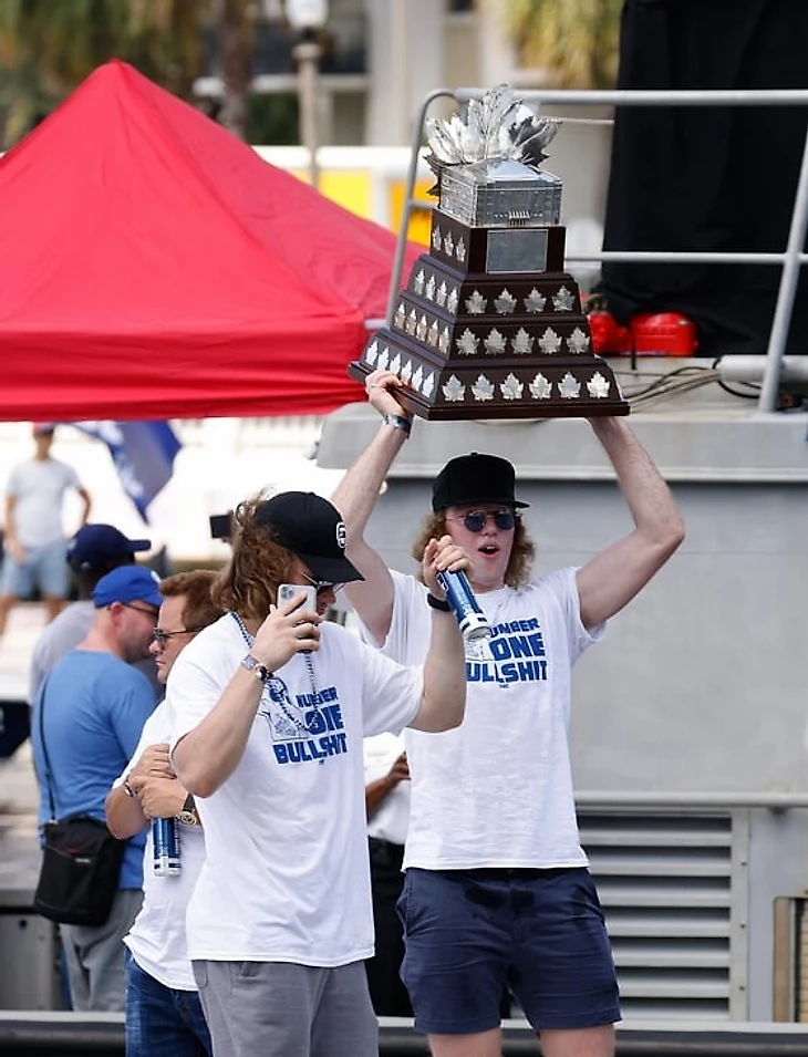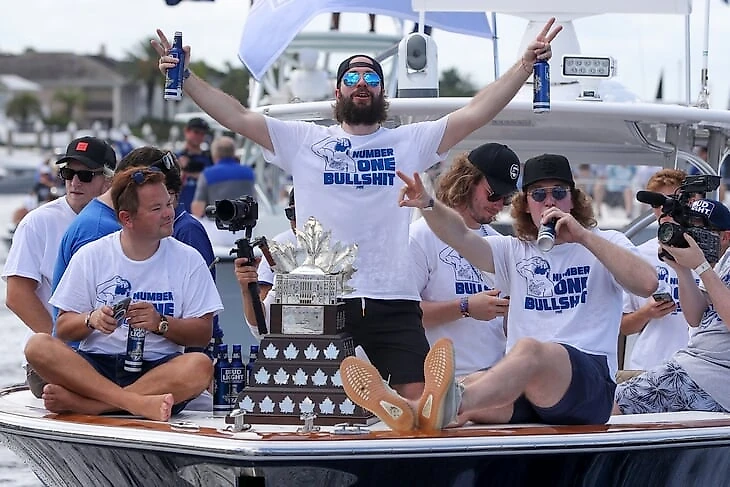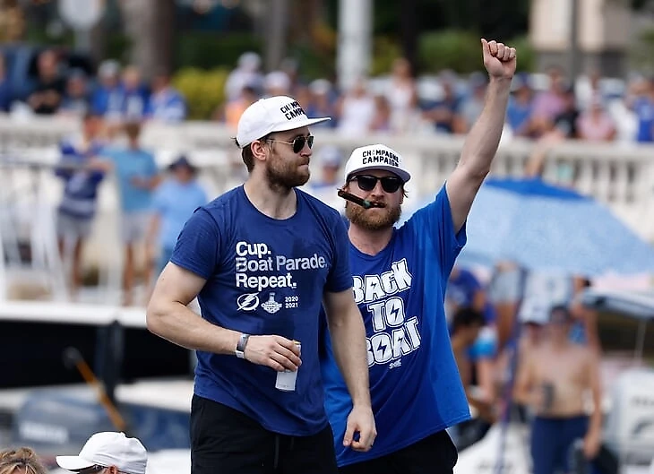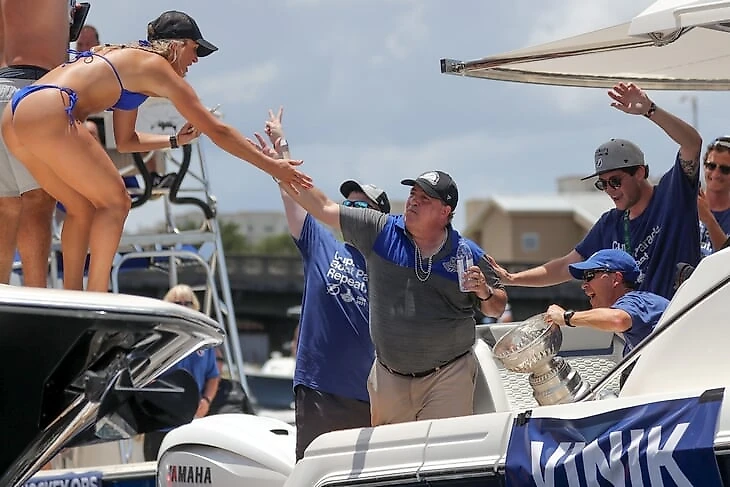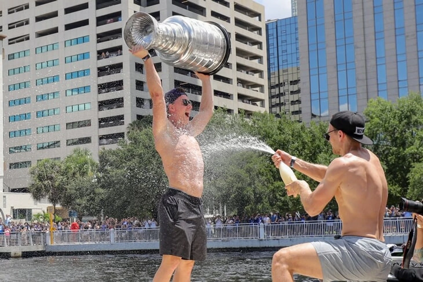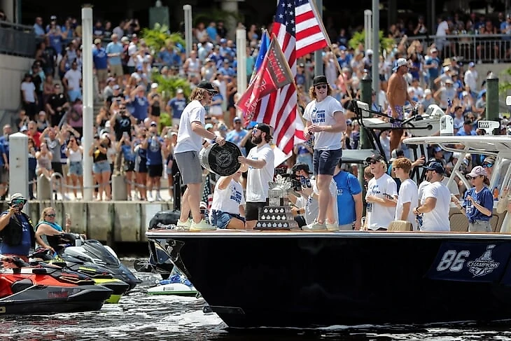 «Тампа» снова устроила чемпионский парад на реке: танцы под «Руки вверх», Кучеров и пиво, «Конн Смайт» на голове Василевского. В итоге сломали Кубок Стэнли