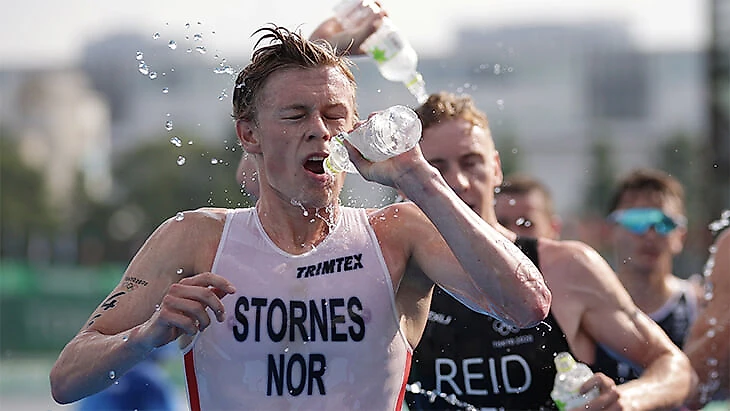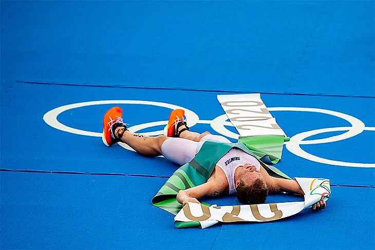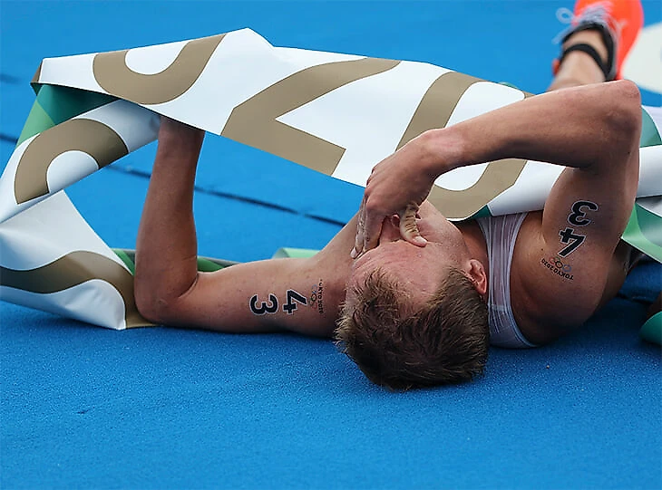 Триатлон в такую жару в Токио – пытка. Норвежец-чемпион рухнул без сил на финише и не мог встать сам