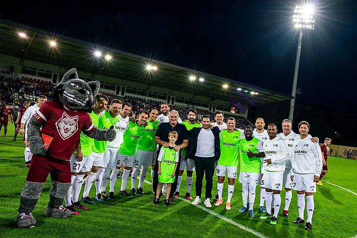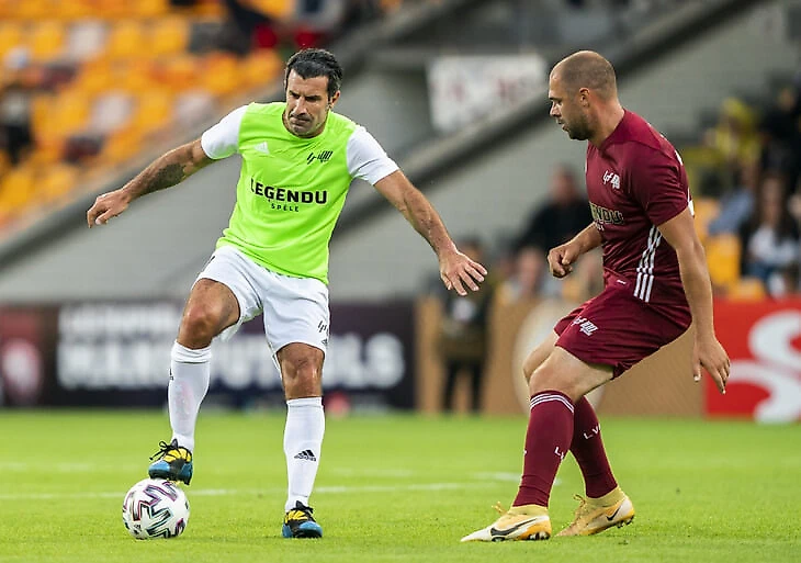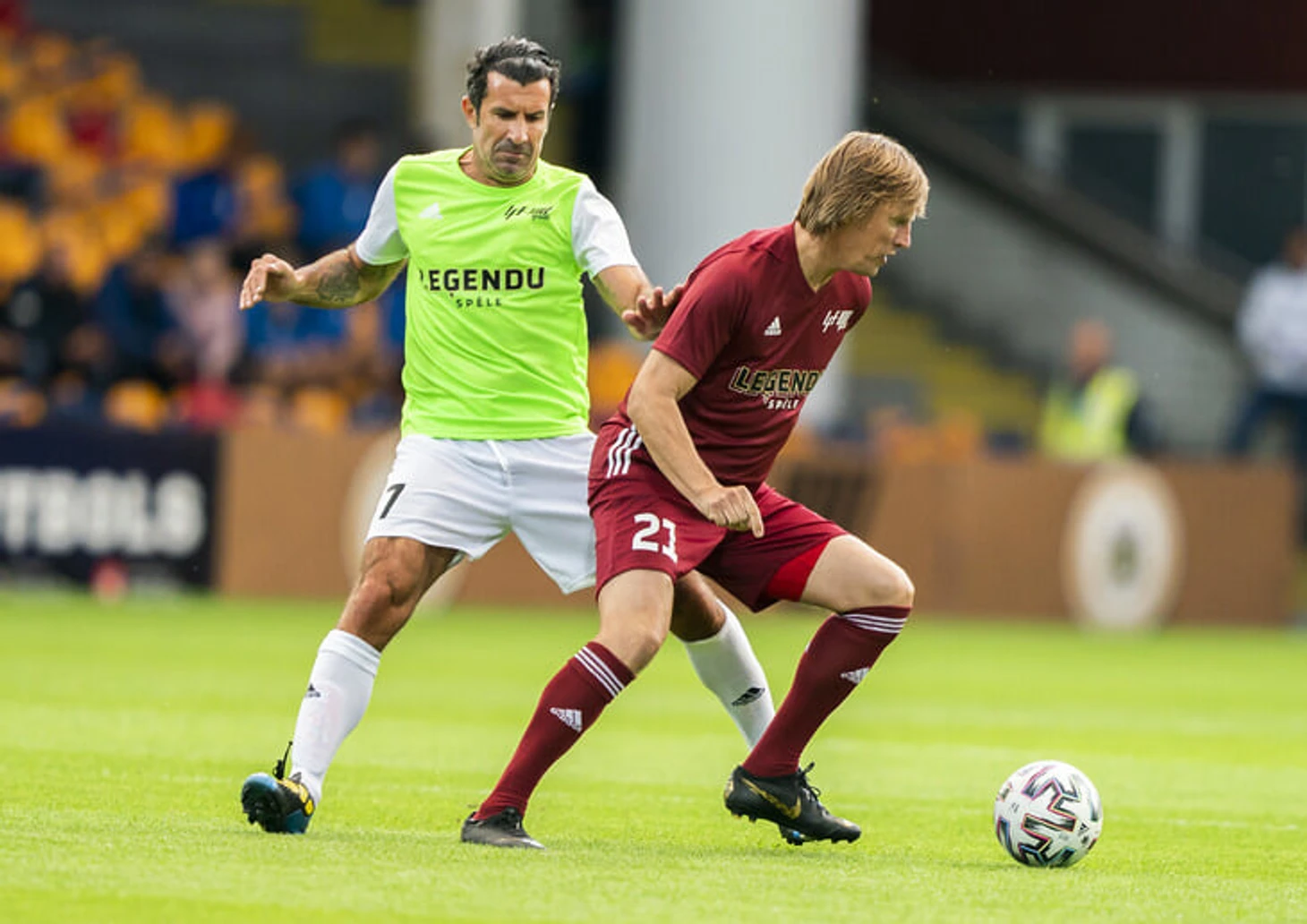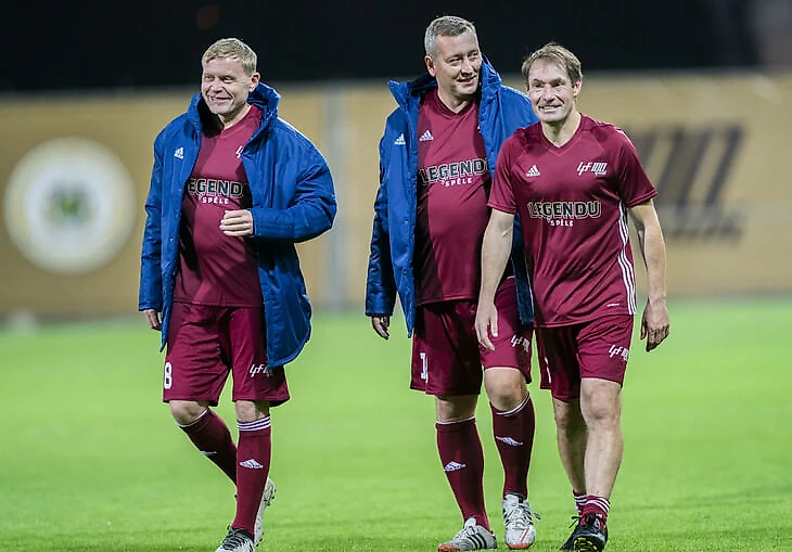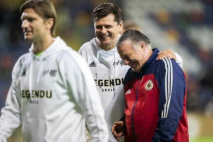 Угадаете, где встретились Фигу, Малуда, Йиранек и Игнашевич? В матче ветеранов отметили 100-летие федерации футбола Латвии