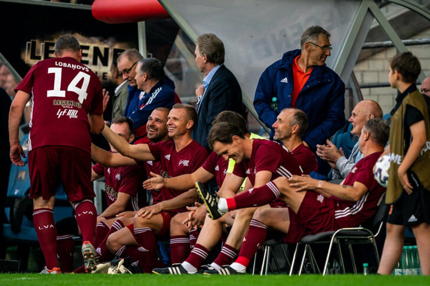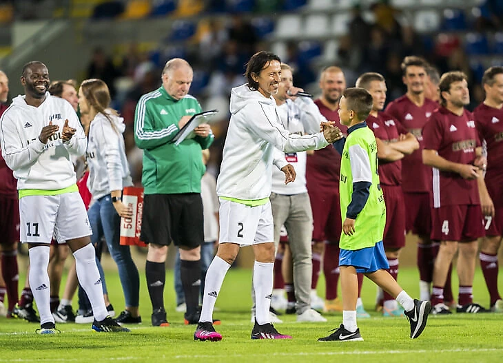 В субботу на стадионе «Сконто» в Риге прошел матч легенд, посвященный 100-летию латвийской федерации футбола (ЛФФ). Сборная мира обыграла сборную легенд Латвии со счетом 6:1.