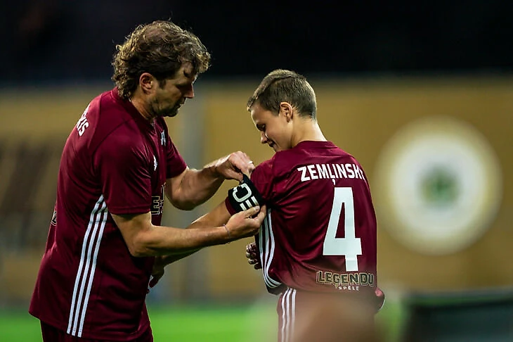 В конце второго тайма капитана сборной Латвии Михаила Землинского символически заменил его 14-летний сын.