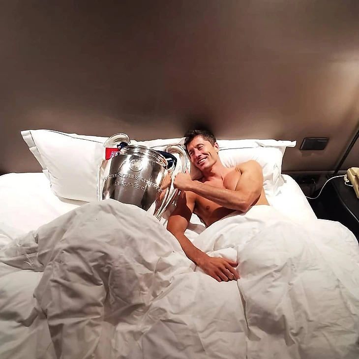 В августе «Бавария» победила в Лиге чемпионов – кубок на целую ночь остался у главного мюнхенского снайпера. «Проснулся вот так», – подписал фото Левандовски.