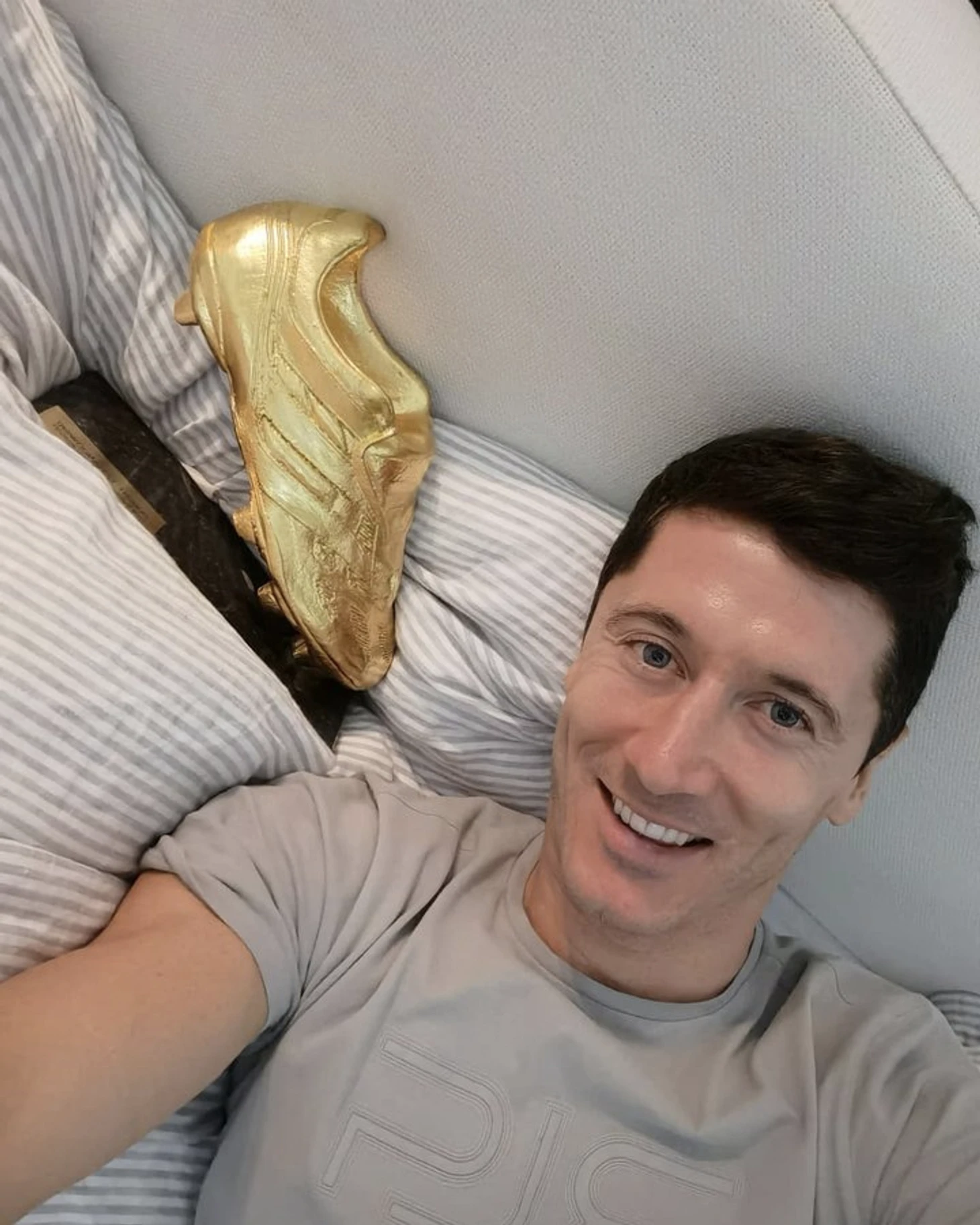 Это уже привычная картина: Роберт обожает фотографироваться с трофеями в постели. В 2020 году мы увидели сразу сразу два таких кадра.