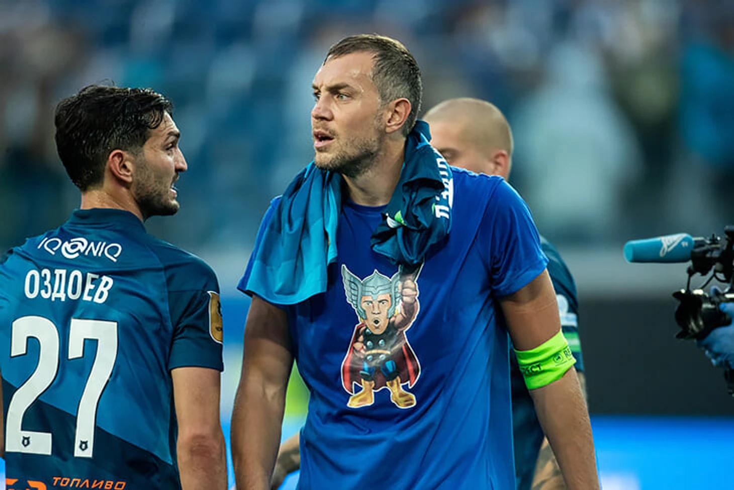 Переносимся в ноябрь 2019-го. Во время матча с «Лионом» игровая футболка Дзюбы порвалась – и Артем рассказал, что под ней скрывалось: «Прикольно смотрится. Мне такой презент неожиданный сделал Гусаков Юрий Михайлович. Очень приятно. И надо же, как только он мне ее подарил, мне майку порвали и только голова моя торчит».