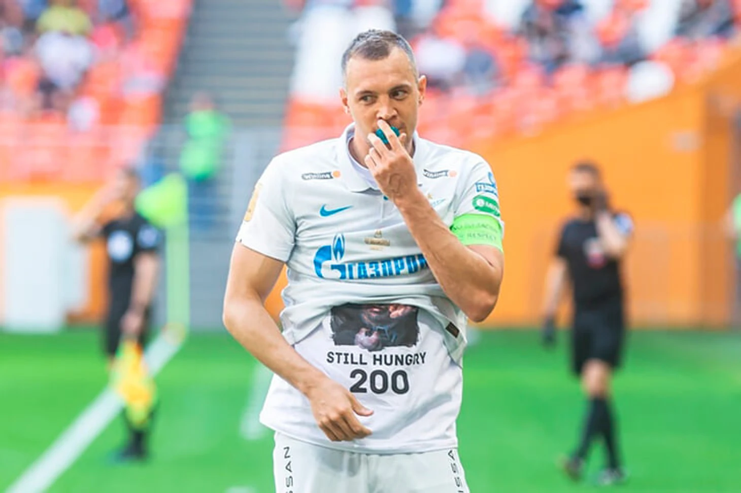 Артем Дзюба делает показ футболок с текстовыми и графическими посланиями фирменным стилем. Две недели назад, когда он забил тульскому «Арсеналу» и сравнялся по голам с Олегом Веретенниковым, форвард отметил еще и 100-й гол за «Зенит». Правда, спустя две минуты случился страшный выстрел Кангва.