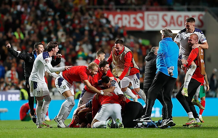 Для выхода на чемпионат мира сборной Сербии нужна была победа над португальцами – и они добыли ее максимально драматичным способом. Пропустили на второй минуте, сравняли до перерыва, а в конце устроили мощнейший навал (играли в три центрфорварда – к Влаховичу вышли Митрович и Йович).