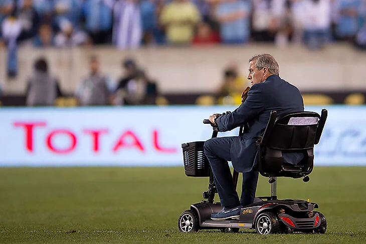 С 2013-го тренер Уругвая не мог нормально ходить – пользовался тросточками, а чуть позже и костылями. Но тренировать не бросил.