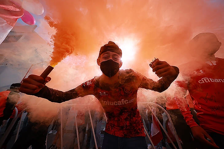 11 апреля. Разгоряченный и задымленный фанат перед игрой чемпионата Мексики «Толука» – «Монтеррей».
